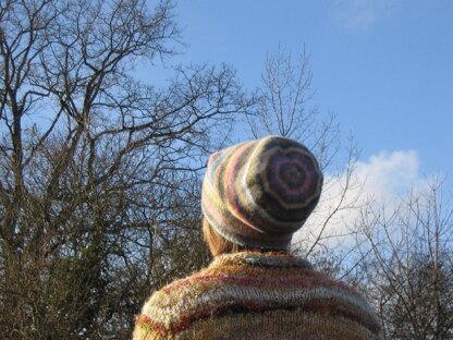 This pattern is for a felted long beanie hat. It's knitted in lots of colours, so is ideal for using up your leftovers and stash yarns. I use Shetland 2 ply yarn but you can adapt the pattern to any weight of yarn.