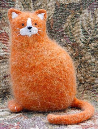 Knit and felt a whimsical kitty to keep you company on the couch for long hours of knitting. The felted kitty sits about 8-inches tall.