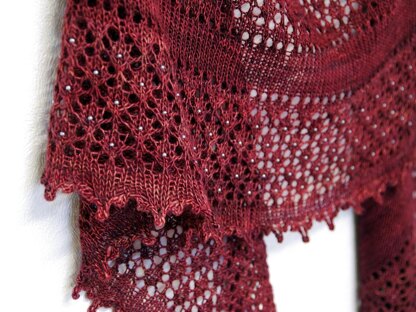 This pattern is written with both metric and US terminology. Both written and charted instructions are given for the eyelet pattern. The pattern includes a photo tutorial for placing beads with a crochet hook.