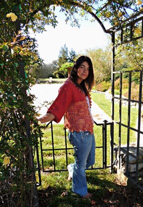 Sometimes I like to eat dessert first. That's why this lovely, feminine cardi begins with the bottom lace edging instead of finishing with it. The botanical print of the lace panels create curves in a most flattering way; while the ¾ sleeves and superwash worsted yarn combine beauty with comfort. Following the Kirigami-style of knitting, this cardigan is still essentially a knitted square. It is meant to hang at the hip, and rest open, but feel free to embellish it with a shawl pin, if you like. This pattern uses lace, picked-up stitches, temporary (waste) stitches, wrap & turn short rows, 3-needle seaming, and applied I-cord edges to create an all in one piece garment that is flattering and feminine. Enjoy!
