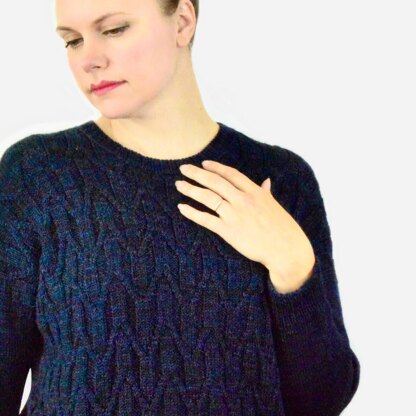 Finished Sizes Designed with 8-10” / 20-25cm of positive ease 38 (42, 46.25, 50, 54.25) (58, 62, 66.25, 70.25)” / 96.5 (107, 117.5, 127, 138) (147.5, 157.5, 168, 177.5) cm