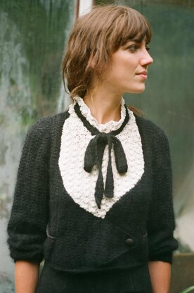 Dinner jacket sweater. The pattern is available in UK sizes 8 - 16 and is knitted using 4ply yarns.