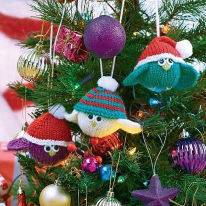 These Festive Birdies in their winter hats make a fun and colourful alternative to a boring bauble! Two hat styles are included… a Santa style sorting hat and a bobble hat, decorated with pompoms. Designed by Amanda Berry @fluffandfuzz, the birds and hats are knitted in acrylic DK yarns on single pointed needles (not in the round). The eyes are small black buttons on top of white felt fabric circles, but you could also use toy safety eyes, wobbly stick-on eyes, or embroider them in yarn. For confident beginners and above, other techniques used include casting on and off, knits, purls, increases and decreases, knitting stripes, and seaming to finish.