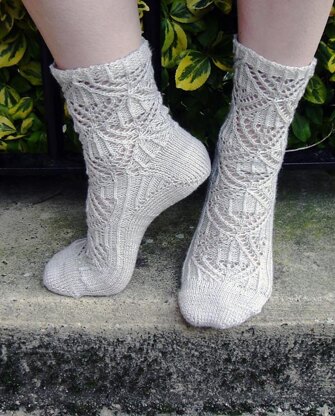 I can never decide between lace and cables. But it's Spring, so lace wins! This lace design incorporates all the things I love about cables: the undulating curves and lines and the tendency they have to draw attention and draw things in. It all makes for an elegant, toe-up sock that’s perfect to tuck into a pair of high heels.