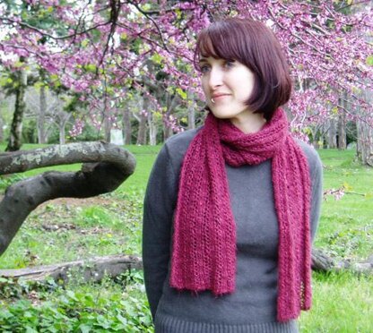 This scarf is made with an orderly lace rib, which results in an elegant looking fabric. The two-row stitch pattern is a good introduction to lace for beginners, who will be amazed at what they can make with just a few simple stitches. The smaller size is a good all-purpose scarf, and the larger size is luxurious to wrap around your neck multiple times to keep the wind out.