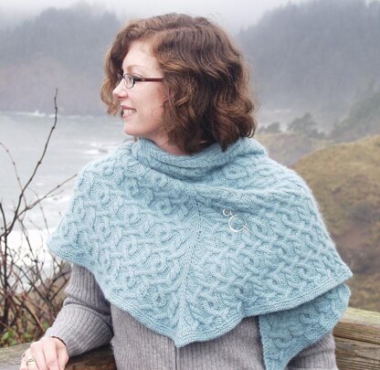 Like my time in London, the Finchley Road Shawl starts small, then branches out wider and wider. Since it is worked to size, gauge is not vital and virtually any cozy yarn that shows off cables well would work.