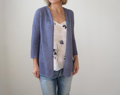 A sleek, minimalist design that lets the yarn shine! To the discerning eye of a knitter it will be apparent that the shaping is achieved through elegantly placed lifted increases throughout the yoke and then carried down the back. A few short rows are used to make the front sections a touch shorter than the back. Altogether, the result is a simple and wearable cardigan.