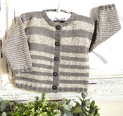 This stripe cardigan is both practical and classical and would be suitable for everyday wear. Pattern is worked in stocking stitch, and stripes, from the bottom up, then divided for Front and Back, which are worked separately. Sleeves are worked separately. Seaming is required Pattern comes with a schematic, and written tutorial on how to knit single rows in stripe pattern without cutting the yarn.