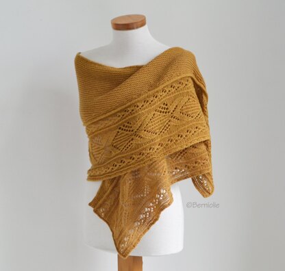 First you knit the border of the crescent shaped shawl. After that you pick up stitches and you knit the base of the shawl bottom up by knitting short rows.