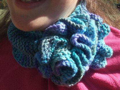 All proceeds are donated to Expanding Lives, a nonprofit that educates and empowers young African women. Fiorire means to flower or bloom, as the scarf does when you draw one of its ruffled ends through the other and a flower appears. It can be worn as a headband, too! In English or French. Pattern includes gauges and stitch counts for super bulky, bulky, aran, worsted, dk, sport, or fingering weight yarns. The knitter can adjust for about age 8 through adult size by varying the length.
