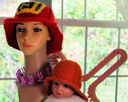 This is a fun costume hat you can make your loved ones that isn't just a fireman hat, but also a safari hat and sailor hat if you simple change the colors. I also provide 2 versions a round loom 48 peg version and a x loom, flexee loom version for the large gauge. The pattern includes both versions along with the video tutorial. I used more than a single skein of Lions Brand Hometown USA yarn, so you will need to buy 2 skeins to complete the project. You can make a doll size simply using the 3/8" gauge in all types of looms. The sizing can vary depending on the number of rows you do to be a child size or adult size. This is an intermediate advanced pattern but well worth the effort to learn. As always if you run into any questions feel free to contact me.