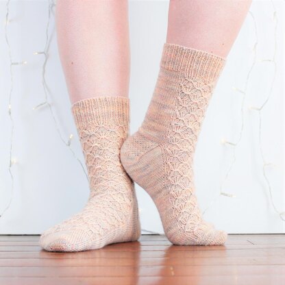 Pretty and delicate, yet cozy and warm, the First Star Socks are great to wear at any time of year. Each sample was knit using a beautiful non-superwash yarn by WoolUpNorth of Norway, a country from which you can see the pattern inspiring aurora borealis (or Northern Lights). The delicate star motifs feature the same technique of horizontally wrapping stitches as The Sweater Collective's Winter Dusk Hat pattern – no cabling required!