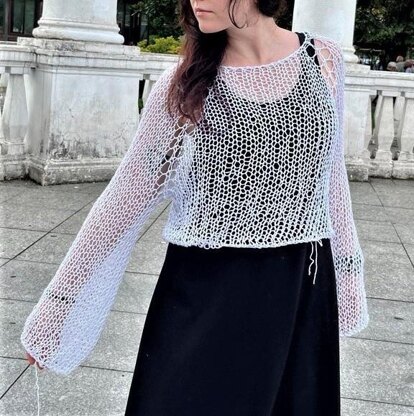 This longsleeve top is worked in the round with circular needle, top down. Then divide yoke for body and sleeves.