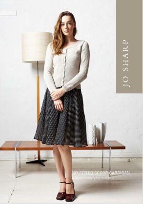 A neatly fitted cardigan with scoop neckline and fully shaped sleeve. The bodice features a deep rib at at the waist.