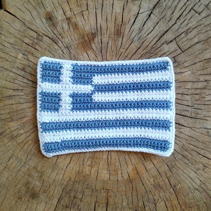 Easy crochet pattern of flag of Greece, with charts. PDF pattern with clear instructions to make this flag and use as mug rug, applique on bag/rucksack or to make a bunting. You can make it if you know single crochet stitch, crocheting in rows and changing colors. Finished size: 17x11cm/6.5x4.5”