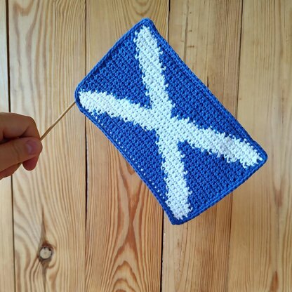 Easy crochet pattern of Scottish flag, with chart. PDF pattern with clear instructions to make this flag and use as mug rug, applique on bag/rucksack or to make a bunting. You can make it if you know single crochet stitch, crocheting in rows and changing colors - Fair Isle technique. Finished size: 17x10cm/6.5x4”