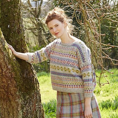SPRINGTIME is a beautiful trans-seasonal collection of quintessential feminine knitwear featuring floral intarsias, fairisles, subtle lace and twisted stitch textures. Mainly using Rowan Felted Tweed, this collection is the ideal solution to the problem of what to wear on a sunny spring day when it’s still chilly outside.