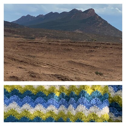 A simple 2 row pattern that takes advantage of Wren 8ply and Superb 8 wide colour ranges. With minimum ends to sew in, due to carrying yarn up the side and later encasing the floats in the border. Pattern is in two sizes 110 x110cm and 85x90cm. Very easy to modify size.