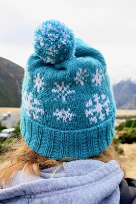 Floating Snowflake Hat is a hat designed full of different sized floating snowflakes.