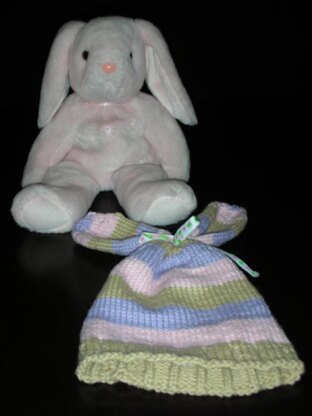 A sweet bunny hat for your little ones! Hat is knit in the round, and ears are knit directly from the stitches at the top. Worked up in Springy colors, your little bunny will be ready to hop off in no time at all.