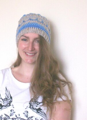 Finished Size/Gauge: Finished size goes from 21 inches/53 cms unstretched to 24 inches/61 cms stretched, approximately, and will fit the majority of teenager and adult heads. Gauge is not critical because of the ‘stretch factor’ if you would like a particularly large diameter hat then go up a hook size or two, bearing in mind that more yarn will be required. The length is easily adjusted by repeating the final round.