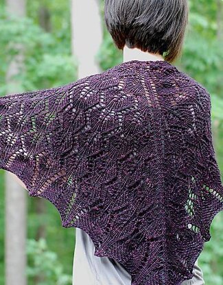 All these definitions of flourish apply to this dramatic shawl, knit from the top down at a larger gauge for a more modern look. Cascading from the center out, the large, bold leaves make a lush statement, especially knit in a jewel-toned color.