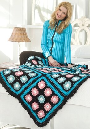 Flower Accents Throw in Red Heart Soft - LW2173