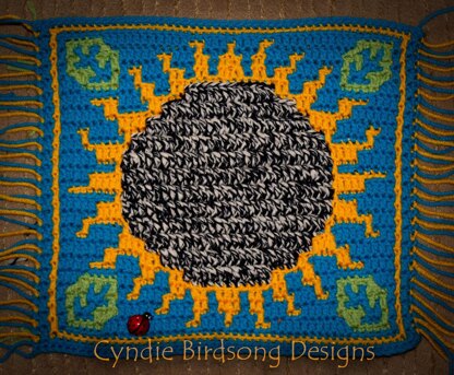 You will need 4 colors of yarn, although you could do this in 2 colors if you keep the background & flower center the same color, and the border, petals & leaves the same color. You could also use variegated yarn for the background, or use 2-3 colors of yarn to create a striped or gradient background.