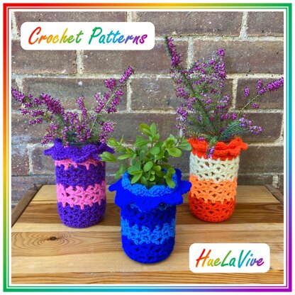 This pattern is a fun way to dress up a glass jar in order to make a pretty home accessory. You can use the decorated jar as a flower vase, a pens jar, for kitchen stuff or whatever you like :)