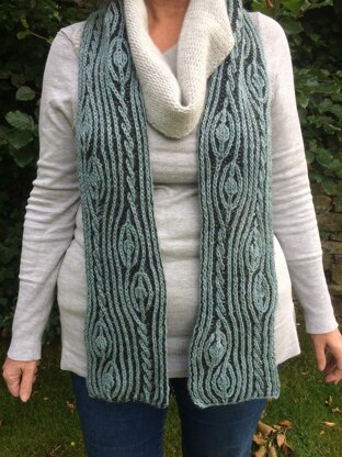 Lovely twisty cables form the flower stems whilst a touch of brioche increases and decreases create the flower buds. A statement reversible scarf!