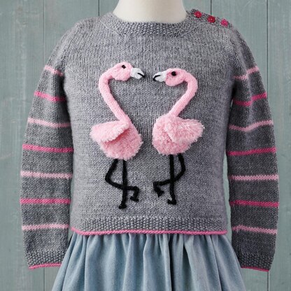 This sweater is a simple knit, with applique Flamingos which are sewn on. No fiddly intarsia. These flamingos are knit in King Cole, Truffle yarn which is supper soft, but you could also work these in any DK weight yarn