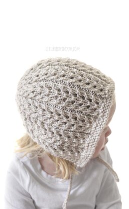 The Flutter Lace Baby Bonnet KNITTING PATTERN is a beautiful classic looking baby bonnet with an easy to knit lace pattern. It's only an easy 4 row repeat that produces a gorgeous intricate looking result! And this cute baby bonnet knitting pattern is just as pretty from behind as it is from the front! This one will look so cute on your baby or toddler!