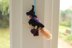 Size: witch, 12cm, broom, 13cm Materials • DK (8-ply) yarn in small amounts Black, peach, dark brown, burgundy, purple • Light brown 4-ply (fingering) • Toy stuffing • Wooden skewer • Pink pastel Tools • 3mm knitting needles • Chenille needle