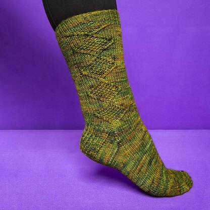 The Fogyle Socks were inspired by argyle socks. Who doesn't love argyle socks? But sometimes intarsia is just not in the cards. So I've created a faux argyle pattern along the leg of these socks using knits, purls, and twisted stitches.