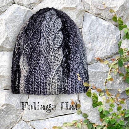 The Foliage crochet hat is made vertically, flat, in one piece. Repeating panels are connected as you go. The Foliage stitch pattern is created using short rows and slip stitches that are smoothly integrated into the ribbing with an optional fold available.