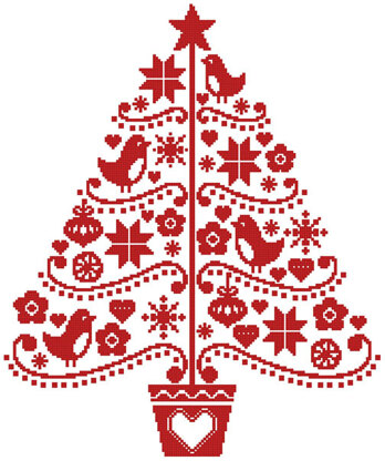 This counted cross stitch pattern of a Folk Art Christmas Tree was created from an image by redkoala - Vectorstock. Only full cross stitches are used in this pattern. It is a black and white symbol pattern.