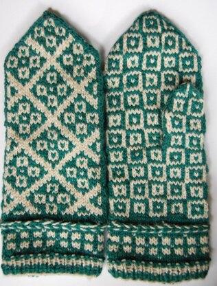 These mittens feature Latvian braids and colorwork motifs that are relatively simple yet engaging, for new and experienced knitters alike. This pattern is written for one size, but can easily be adapted to a variety of smaller or larger sizes by adjusting the gauge with different yarn weights and/or needle sizes. There are also instructions for knitting fingerless mitts, nice for autumn and spring, or when your hands need just a little extra warmth.