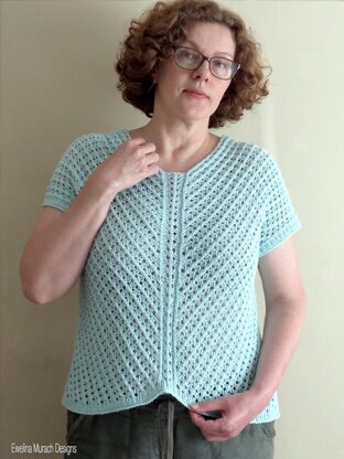 Follow The Path is a top-down and seamless sweater made in a simple lace rib pattern. The sweater has an unusual construction: It starts with a panel that runs across the back, then stitches for the back and front are picked up from the panel. The fronts are worked diagonally, which creates a v-neck, without the need for neck shaping. The pattern gives you 2 sleeve length options: sleeveless, finished with 1x1 rib around the armholes, and long sleeves which can be modified to make sleeves of any length.