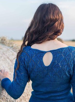 The special feature of “Fond Memories”, a slightly fitted elegant pullover worked seamlessly top down with fake side seams, is the keyhole opening on the back neckline, an elegant detail rarely seen nowadays.