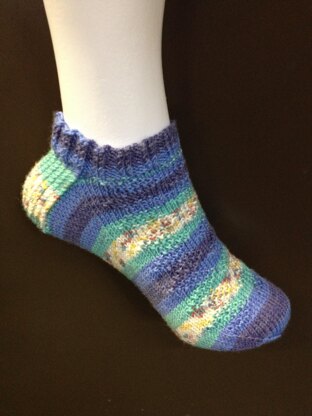 This is a knitting pattern for an short sock. It is knitted in the round with 4 ply sock yarn. The length of the foot can be altered to fit.
