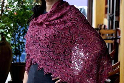 Fox and The Grapes is a triangular shaped shawl worked from the bottom up. The pattern is worked on the both wrong and right sides, but it is easy enough to memorize and knit. I named it Fox and The Grapes because I can see foxes and grapes in the pattern. Can you see them? Pattern includes charts and written directions. If you would like to add beads to your shawl, instructions are included as to where to place the beads.