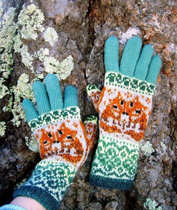 Another pattern from the Fox Collection. Matching mittens can be found here: http://www.ravelry.com/patterns/library/fox-tales. The gloves fit approx. 18cm hand circumference with recommended gauge. For larger sizes adjust your gauge accordingly, and/or use thicker yarn. The instructions are written for circular needles; adjust if using DPNs.