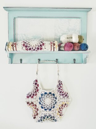 The Fractal Bloom Project Bag is a colourful interlocking floral design inspired by fractal sand art. Using 7 hexagons joined together this practical and stylish bag is perfect for every day use