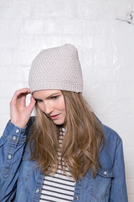 A neat beanie hat with a difference. The hat is worked in the round in a simple all over texture before casting off using three needles. This means the hat is totally reversible, giving two different looks.