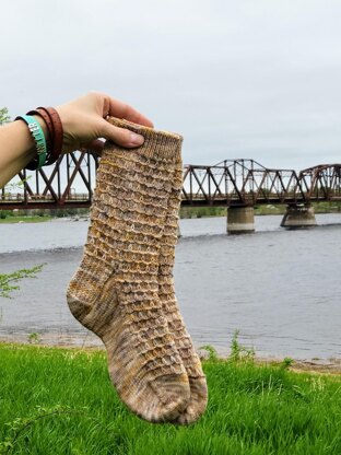 This is an addictive and very easy texture pattern that seems to make the knitting fly by. It is my favourite kind of sock with a little bit of interest but lots of plain knitting that shows off the yarn. Written and charted instructions are included.