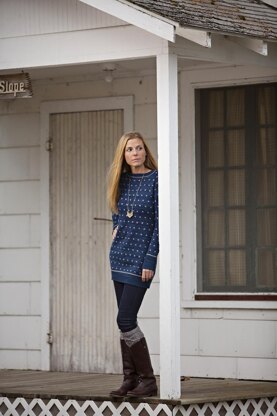 Lightweight and cozy, here is a long tunic that pairs beautifully with leggings or your favorite pair of skinny jeans. Freshly Fallen is a top down raglan, knit in your favorite Plucky fingering weight yarn. Knit in the round, with recurring Fair Isle dots, this tunic looks like you brought a bit of the freshly fallen snow inside with you. And, it’s very easy to knit it a bit shorter if a simple pullover is more your style.