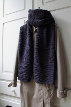 FRIEDRICHSHAIN Scarf is knitted across from one end to another. The pattern of the scarf is made of four sections. Two big sections with the “Irish Moss Stitch” and the “Rhomb Stitch” are separated by two small sections with “Stockinette + Garter Stitch”. All pattern sections are worked with knitting and purling stitches. The challenge of this pattern is the sequence of the sections that, at the same time, diversifies the knitting process and makes it more fun to knit. The scarf is unisex and looks very modern and stylish due to its geometrical texture.