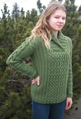 This jumper is knitted flat in pieces from the bottom up and seamed for a well-structured and comfortable fit. The cable pattern can be worked either from the charts or the written instructions, whichever you prefer.