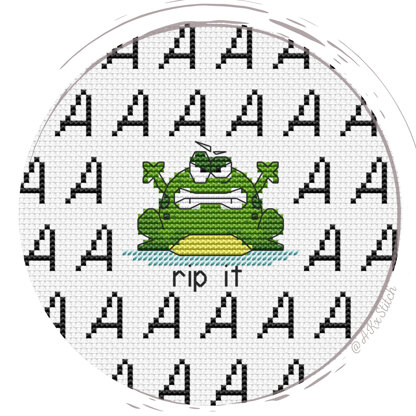 Frog Counted Cross Stitch Pattern and PDF Digital Download. No more visits from grumpy Mr Frog! Fun and easy pattern suitable for beginners to keep Mr Frog at bay. Put him in a frame and keep him away from your precious WIPs.Stitched on Aida 14ct: 15 x 13 cm (6 x 5 in)DMC Threads: 6 solid colours (1 blends)Used stitches: full cross stitch, half cross-stitch, backstitch, French knots (optional)Skill level: Easy / BeginnerStitch time: 15-20hCross stitch pattern in PDF, Instant Digital Download includes: 1) cover page with preview; 2) instructions, symbols key and shopping list (DMC thread colour numbers and estimates, as well as fabric options); 3) two black and white charts, with and without backstitch; 4) two colour charts, with and without backstitch; 5) single-page file for Pattern Keeper (available on request).Please note: This pattern is for personal use only - not for commercial use. You can't make copies of our charts to distribute (either as PDF or printed versions) but you can definitely sell your finished cross stitch work.