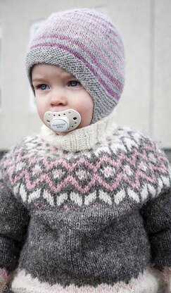 A cute little lopi-sweater for toddlers and kids. A traditional Icelandic yoke and high neck to keep warm during cold winter months.